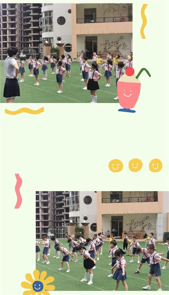建瓯市实验幼儿园的小朋友在老师带领下做操