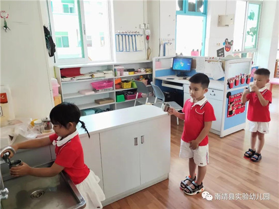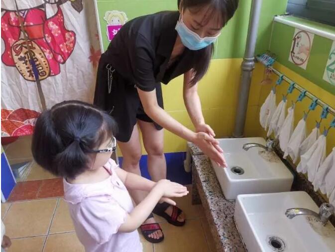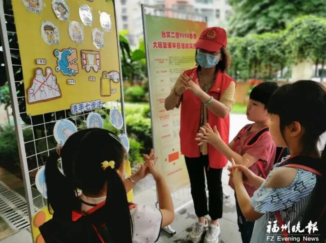 福州市台江区第二实验幼儿园的孩子们学习七步洗手法