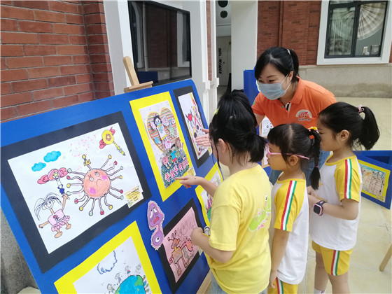 福建幼高专附属第一幼儿园孩子们观看战“疫”故事主题画展