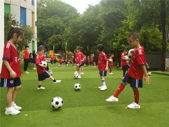 福州市鼓楼区丞相坊幼儿园的孩子们在户外踢足球