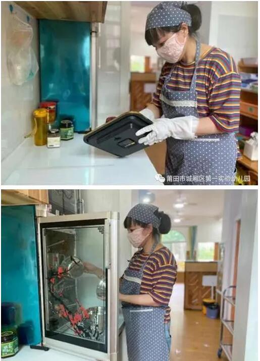 莆田市城厢区第一实验幼儿园保育员在消毒餐具