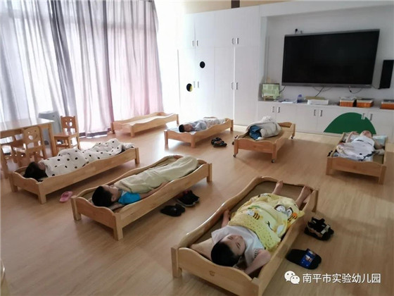 南平市实验幼儿园保育员将小床隔开一米,让孩子们安心进入甜蜜梦乡