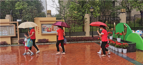 离园时下起大雨,福州市晋安区直属机关幼儿园老师们用一把把“爱心伞”为孩子架起“暖心无雨”通道