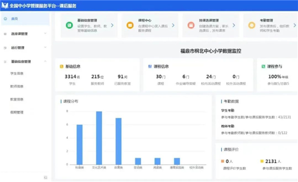 作为教育部课后服务信息化管理工作的首批试点,福鼎市依托“全国中小学管理服务平台”中的“课后服务”模块,积极推动市域内“全覆盖、广参与”,注重“上水平、强保障”,切实提升课后服务管理智能化水平,提高课后服务质量。