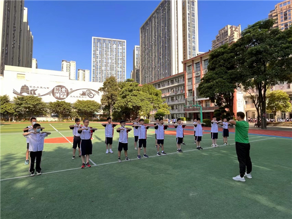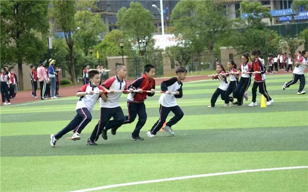 删繁就简的“2”。学校以扎实的体育运动+作业辅导两项基本服务保障学生知识学习充分吸收内化、身体机能得到充分发展。提倡“每天运动一小时,健康学习有效率”,结合“阳光体育”大课间,开展有计划、有针对性、又有趣味的集体锻炼活动,有整齐的广播体操、自编的特色竹简操、现场口令版灵动的放松操等,定期灵活切换各类花样运动,师生共享运动健身之趣。酣畅淋漓的运动之余又有课后作业辅导,通过师生间有效互动答疑,有效率地完成当日“上墙公示”的书面作业,争取做到书面作业校内清。