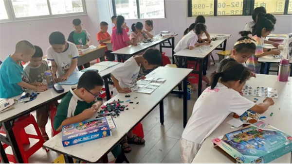 在连城县2023年职工子女暑托班上,老师手把手指导孩子们搭建乐高,带领孩子们享受有趣而富有创造性的动手体验过程;在草帽DIY课堂上,小小的草帽在孩子们的手中多彩起来,红色、黑色、黄色、白色……一顶顶草帽被小朋友赋予了生命,成为独一无二的风景。近100名职工子女在这里品味愉快的暑期学习之旅。