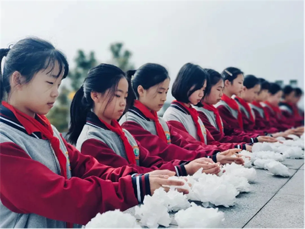 在2024年福州市鼓楼区“我们的节日·清明节”暨“百园千校清明祭英烈”主题活动中,福州市茶园山中心小学的师生们通过集体默哀、敬献花篮、瞻仰纪念碑等方式,从历史中汲取前进动力,让红色基因代代相传。