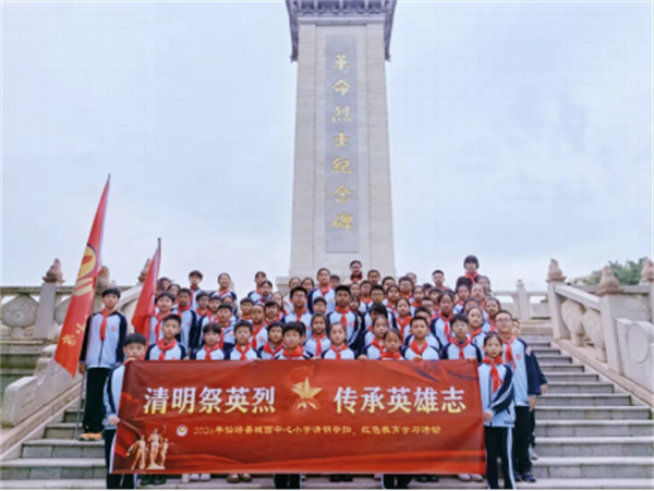莆田市仙游县城西中心小学组织师生来到仙游县烈士陵园,开展以“清明祭英烈 传承英雄志——清明祭扫、红色教育学习活动”为主题的活动。师生们怀着无限的哀思和崇高的敬意来到纪念碑下,向烈士敬献花篮,向革命先烈、人民英雄致敬。