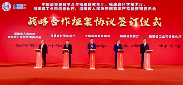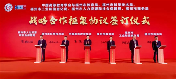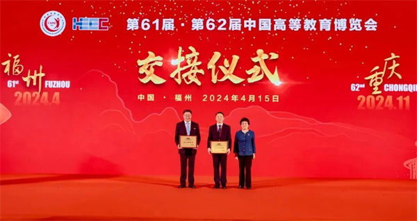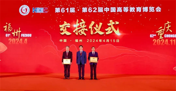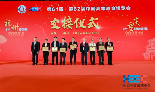 在第61·62届中国高等教育博览会交接仪式上,福建省教育厅、福州市人民政府、厦门大学、福州市教育局获得突出贡献奖,华侨大学、福州大学等14所学校获得优秀组织奖,杜玉波、林蕙青、管培俊、周玉、舒立春、葛道凯、叶燊、刘宴兵分别为获奖单位和学生代表颁奖。李楠代表学会与福建省教育厅、科学技术厅、工业和信息化厅、福建省人民政府国有资产监督管理委员会等四家单位达成战略合作意向,吴英策代表学会与福州市教育局、科技局、工信局、人社局、商务局等五家单位签订战略合作框架协议。