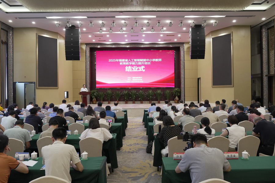 6月26日,福建省人工智能赋能中小学教师教育教学能力提升培训班结业式在泉州举行。本次培训由福建省教育厅主办,福建教育学院、国家教育行政学院联合承办。省委教育工委委员,省教育厅党组成员、副厅长吴伟平出席结业式并讲话,福建教育学院温敬元院长主持结业式。