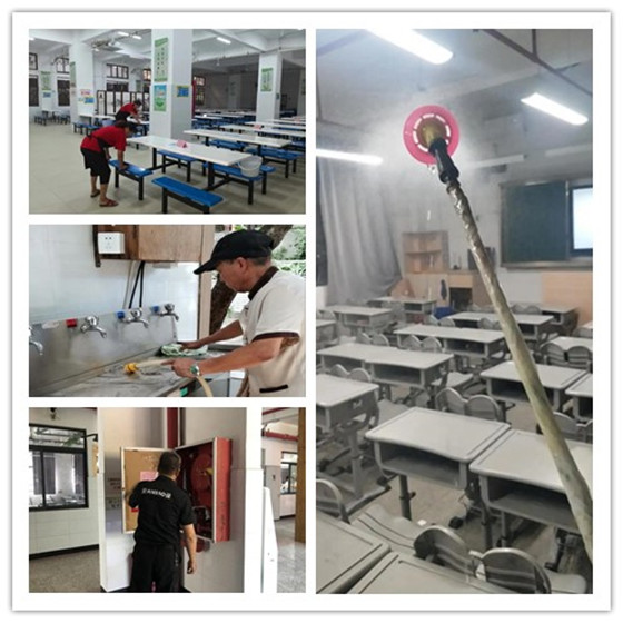 后勤部门对全校进行消杀,对空调进行清洁消毒,对饮水机进行更换滤芯及清洗,并加强对食堂的管理,对教学区灭火器、消防栓等消防设备进行集中巡检、更换,全力为师生们创设安全的学习生活环境。