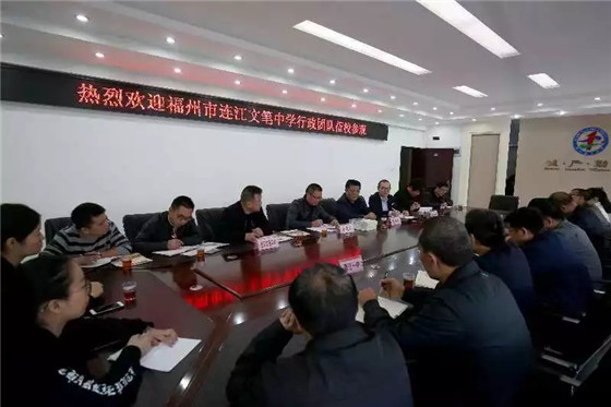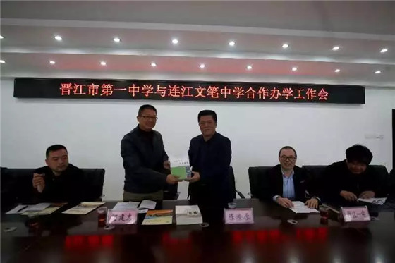 日前,福州市连江文笔中学校长何建忠、副校长邱图谋带领校行政管理团队一行莅临晋江市第一中学,双方就合作办学事宜进行商议。