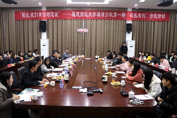1月4日下午,由福建师范大学福清分校团委主办的第一期“校长有约”沙龙活动在该校图书馆学术报告厅举行。福清分校校长陈庆华与80名学生代表面对面座谈,听取同学们对学校的意见,了解同学们的学习生活情况。学校办公室、后勤管理处、教务处、学生工作部(处)、校团委等单位负责人以及各学院团委书记参加了活动。