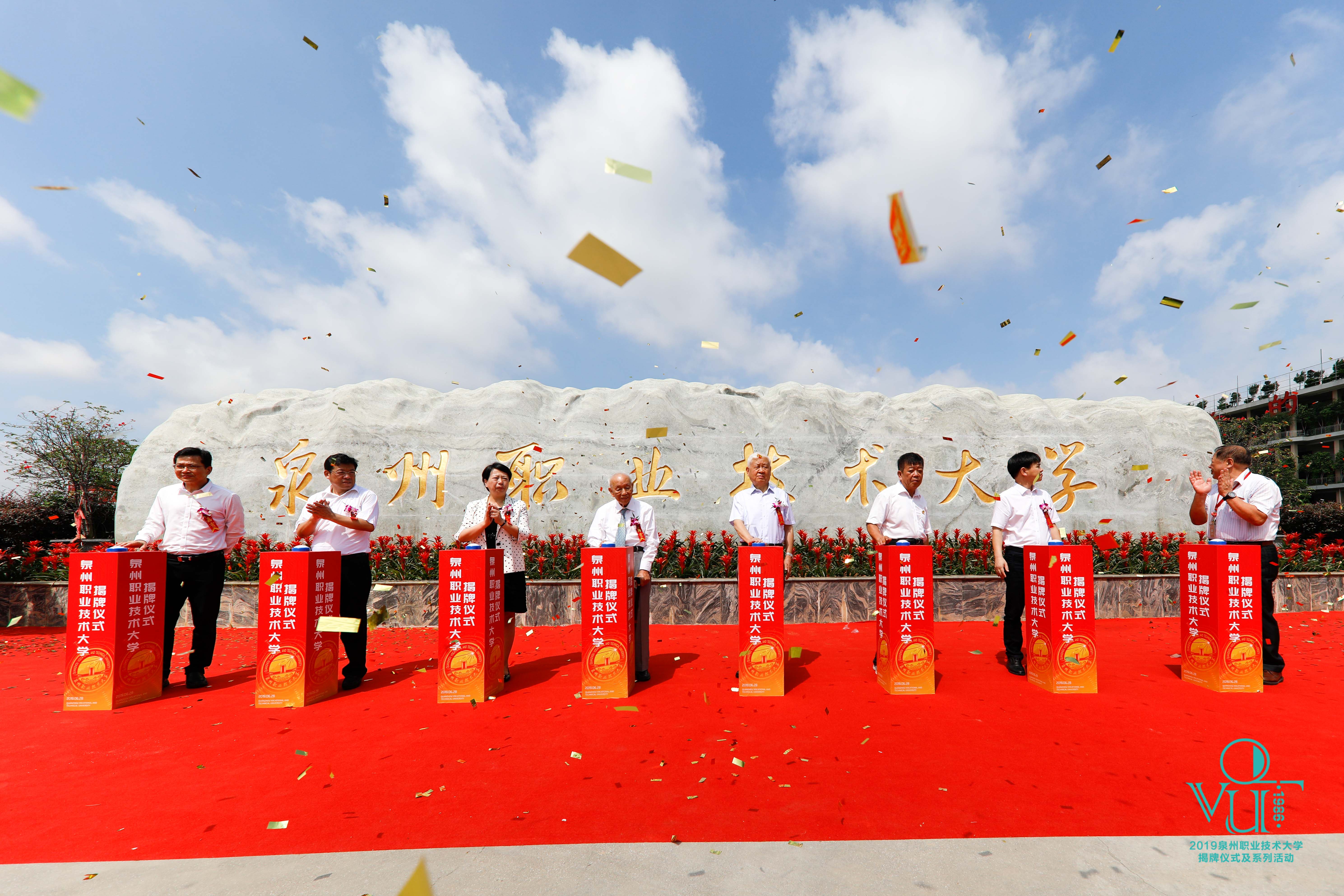 中国高等教育学科奠基人潘懋元教授、中国工程院胡永康院士、福建省教育厅发展规划处林海峰处长、泉州市人民政府周真平副市长、泉州市教育局黄世界局长、晋江市人民政府张文贤市长、吴金营董事长、臧树良校长为学校揭牌。