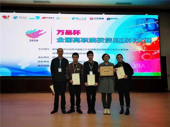 12月4日,由教育部高等学校图书情报工作指导委员会高职高专院校分委员会、高等教育文献保障系统管理中心(CALIS)主办,深圳职业技术学院承办,北京开元数图科技有限公司协办的首届全国高职院校信息素养大赛全国总决赛在深圳职业技术学院举行。我院孙龙申、晏艺峰2名参赛选手斩获全国总决赛学生组一等奖,我院图书馆陈雨雪老师、陈家越老师获“优秀指导教师奖”。