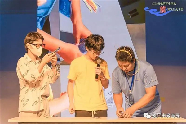 福建营员代表、厦门二中李晋宇同学说:“希望与台湾同学同心同行,一起领略闽南文化的内涵和魅力,一起传播和分享闽南文化。希望两岸青年携起手来,互学互鉴,共同筑梦,让青春在时代征程上绽放异彩。”