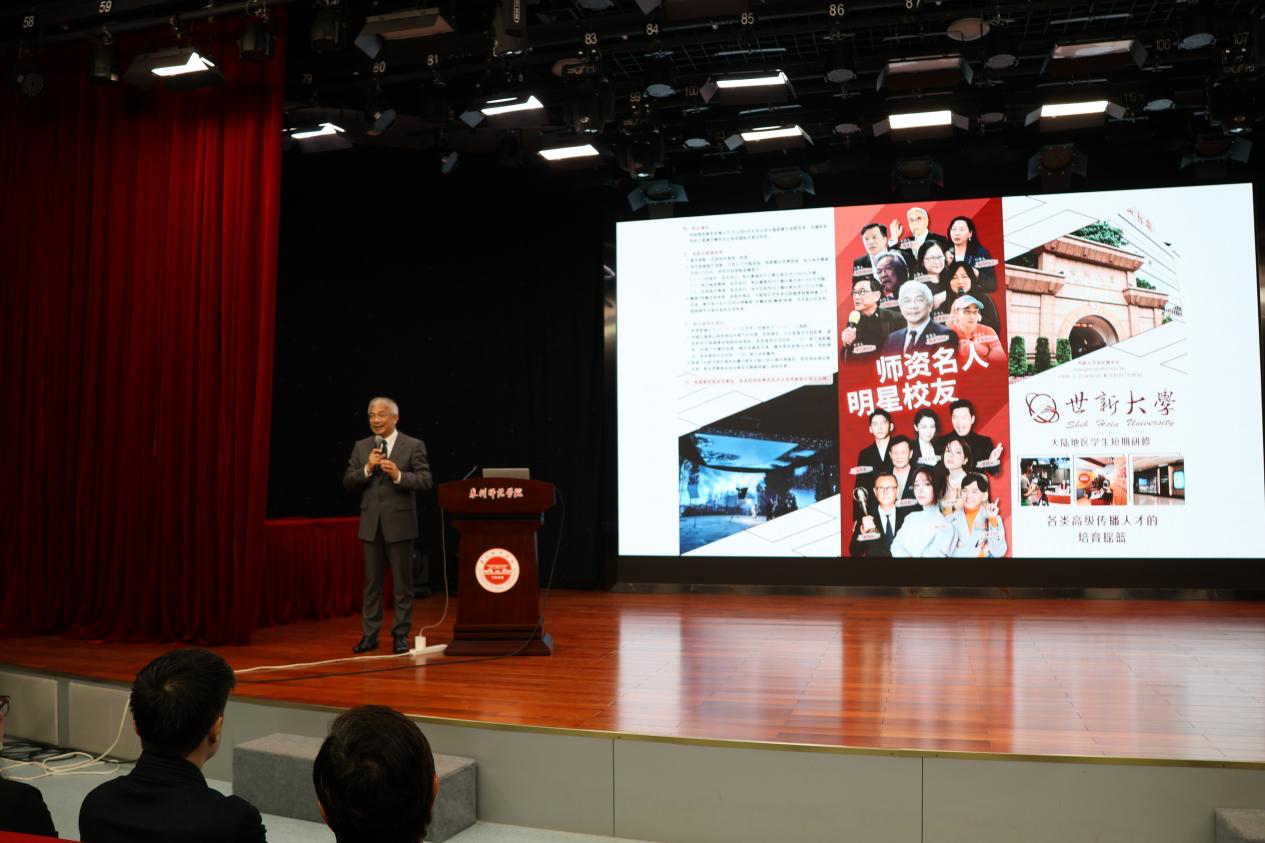 陈清河一行向文学与传播学院广电专业的同学们介绍了世新大学的历史沿革及办学特色等,希望在后疫情时代进一步拓展和深化泉州师范学院与世新大学之间的合作交流,促进两岸高校师生常来常往、携手共进。