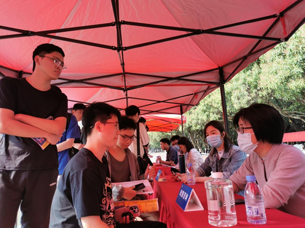招聘会现场,“面试技巧”“简历优化”“职业规划”“政策咨询”和“党员先锋示范岗”五个服务摊点颇受欢迎。校院领导、就业中心指导老师、思政辅导员、专业教师、校外辅导员全员上阵,为同学们提供一站式就业指导。