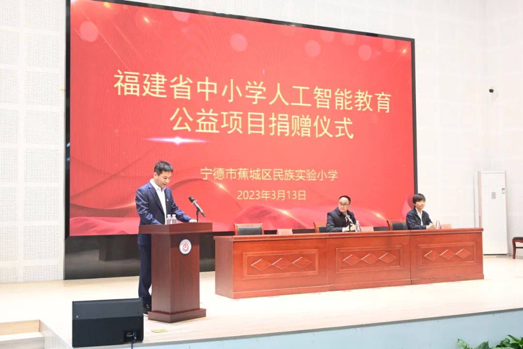 3月13日上午,福建省中小学人工智能教育公益项目学校捐赠仪式在蕉城区民族实验小学举行。蕉城区教育局局长魏阿斌、捐赠企业代表赖燕秋女士出席活动。